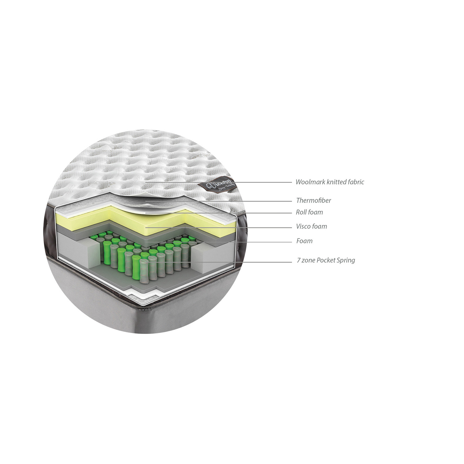 It is made of 100% of pure wool. It has the features to be hypoallergenic, flame-retardant properties and has to be recycled. It breathes and destroys and absorbs bad odors. Antistress feature is good for your heart. 7 comfort area Pocket and high Visco are used together and meet Woolmark feature.
